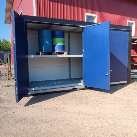 Paksusta konttipellistä ja ptukirakenteesta valmistettu putkirunkoinen suoja polttoainesäiliölle tms.: