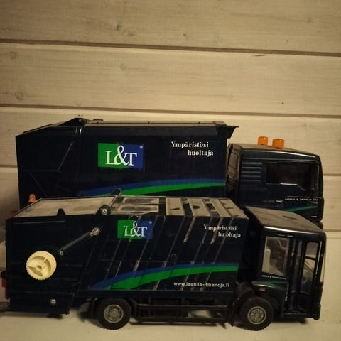 Myydään kuvassa näkyvä L&T roska auto sekä kuvassa näkyvät siihen kuuluvat tavarat. Hinta:30€.