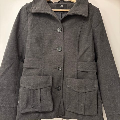 H&M/ Puolipitkä musta villakangastakki 38(36)