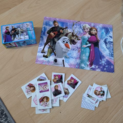 Myydään Frozen muistipeli isoilla pelilaatoilla (n. 9x9cm). 27 paria