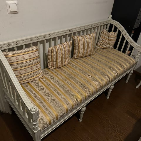 Talonpoikaisrokokook sohva, tuolit ja pöytä