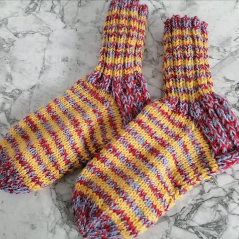 Villasukat uudet,7-veljestä lanka.Jalkaterä 22 cm.N.5-6 vuotiaan koko.