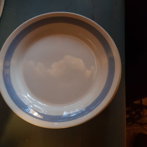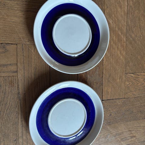 Kahdeksan Arabian Sini lautasen setti. Lautasten halkaisija 24cm. Astiat olleet käytössä, mutta ivat silti siistejä ja ehjiä, ei halkeamia eikä juurikaan krakelointia. Yhdessä lautasessa on särö ja tästä on erillinen kuva.