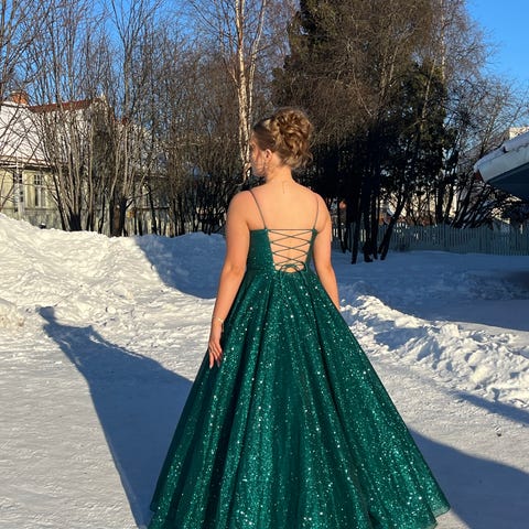 Kauempaa otetuissa kuvissa ei näy kimalteet, mutta viimeisestä kuvasta näet paremmin. Tule sovittamaan Rovaniemelle. Mukana ei ole vannehametta.