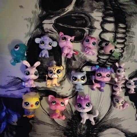 Myydään Littlest Pet Shop eläimiä: askelteleva kissa liilassa mekossa, piisoni ja pieni kenguru. Kissa ja piisoni 6 €/kpl, kenguru 3€ tai kaikki yhteensä 10 €.