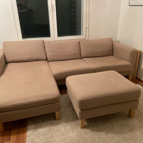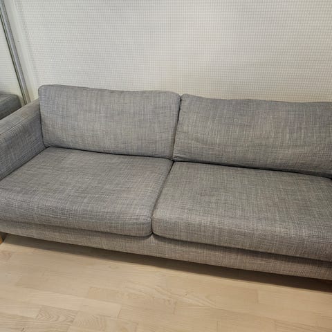 Kolmen istuttava sohva myynnissä muuton takia. Irrotettavat kankaat. Käsinojien ja tyynyjen kankaat juuri pesty. Hieman käytön jälkiä, käsinojien pehmusteet ovat hieman valahtaneet paikoiltaan mutta muutoin perus siisti.