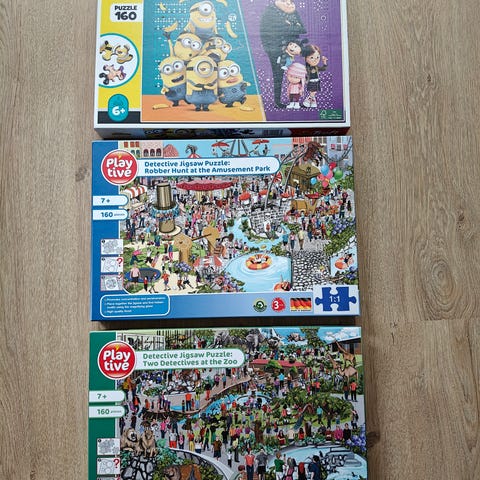 Ethän tingi kiitos. Palapelejä, joita ei ole vuosiin pelattu, toki joskus ne on kasattu. Emme tiedä että paloja puuttuisi, mutta ovat matkustaneet parit muutot, takuuta emme voi antaa paloista. Lapsille, aikuisille 1000 palan pelikin. Myös vanhoja 70-luvun pelejä.