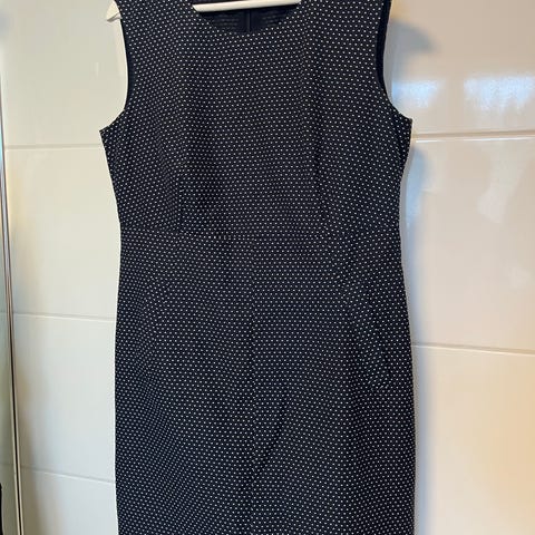 Musta Esprit kotelomekko. Uutta vastaava, vain sovitettu. Olkapäissä nahkamaista kangasta, muuten villakangastyyppistä. Kankaassa ei kuitenkaan villaa. Mitat: kai-kai 51 cm, olka-helma 92 cm, vy 45 cm. Kankaassa 3% elastaania joten joustaa hieman.