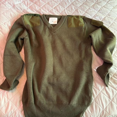 Laadukas Suomessa valmistettu armeijatyylinen, täysvillainen villapaita pyöreällä pääntiellä ja olkapoleteilla. Olkapäissä ja kyynärpäissä myös kangasvahvikkeet. Sopii S-M kokoiselle. :)