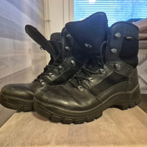 Uudet, käyttämättömät palohenkilön turvasaappaat, Goretex kalvolla.