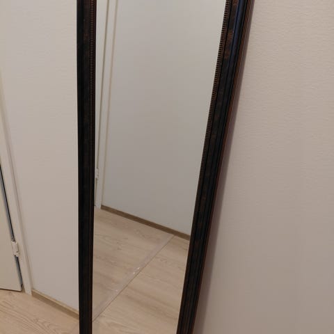 Alaoikeassa nurkassa halkeama, siitä kuva. Ei ole käytössä haitannut tai itse ainakaan silmään pistänyt. Ylänurkassa pieni pala ”peiliä” irronnut.