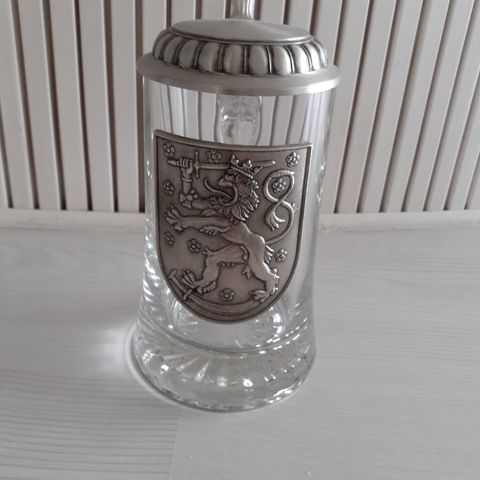 Suomileijona -setti, jossa 1/2 L lasivarpunen tinaleijonalla ja 2 kpl lasia tinaleijonalla. Silkkivuoratussa lahjapakkauksessa.