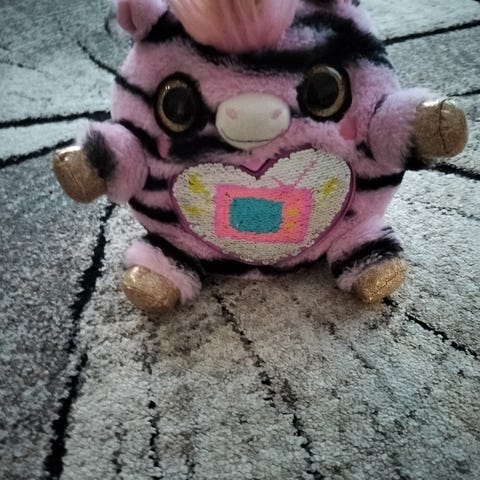 Pehmeästä velluto langasta virkattu monsteri pehmo, jossa silmä tehty langasta. korkeus noin 22cm