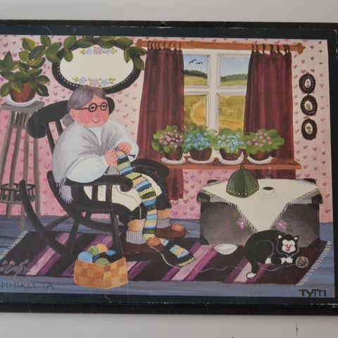 Kiva kultareunainen taulu. Koko 38x48cm.