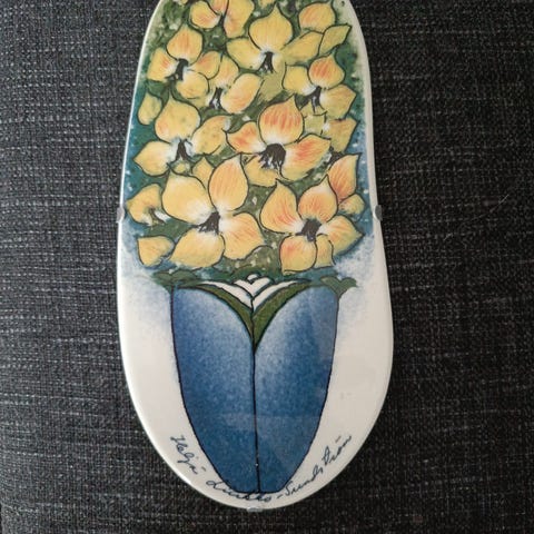 Myyntiin Heljä Liukko-Sundströmin suunnittelema Arabian kukkataulu. Nimeltään Ruiskukat.