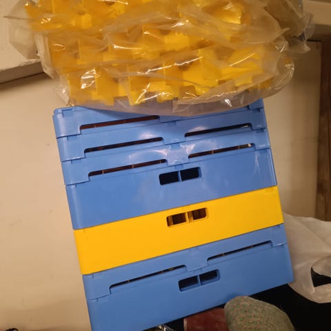 Myytävänä astiakoriteline (RST) noin 10 astianpesukorille. Jousi nostaa korit ylös. Pöytään upotettava malli. Koko: 62x62x70 cm. Hinta alv 0 %.