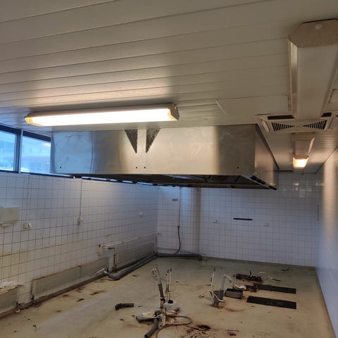Muutama kappale todella siistejä Halton huuvia 150x150 cm ammattikeittiön ilmanvaihtoon.