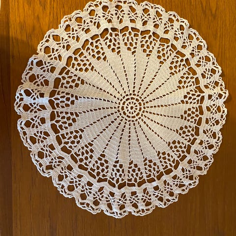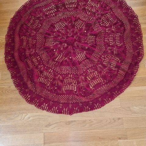 Hyvä kuntoinen pyöreä pöytäliina. Raidat kullan ja hopean kiiltoisia.