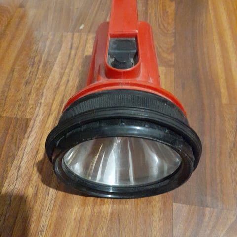 Myynnissä Maglite käsivalaisin. Vanha malli joka toimii kolmella (3) D-paristolla. Tehokas valaisin vaikka ei ole mikään nykypäivän Led hommeli.