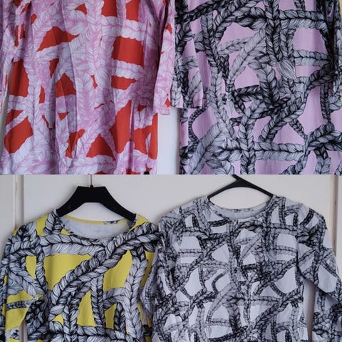 Myydään siistikuntoisia Vimman trikoopaitoja koossa 140. Lisäksi Vimman tunika/ paita/ mekko jossa taskut, koko 130. Ja Napikkaan mekko, ihanan pehmeää trikoota, koko 140. Sekä Metsolan college- pusero röyhelöillä, koko 134/140. 10€/ kpl.