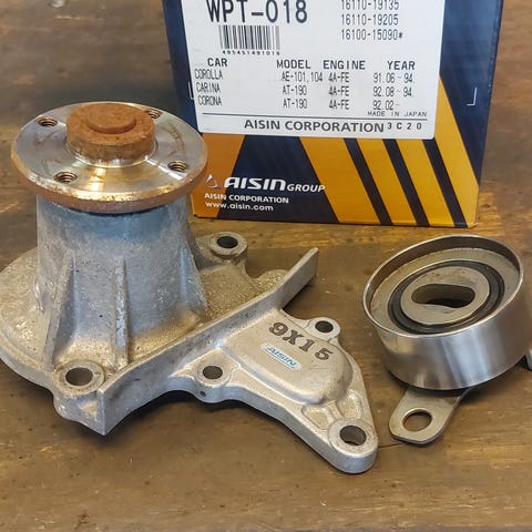 Uutta vanhaa varastoa käyttämätön Toyotan vesipumppu tiivisteellä ilmeisesti alkupään 1900/2000cc koneisiin Corona, Hilux,Crown?? Voi sopia tietenkin muuhunkin. 12mm akselilla ja kiinnitys 5 pultilla. Sarja/osanumero ilmeisesti OCP732?.