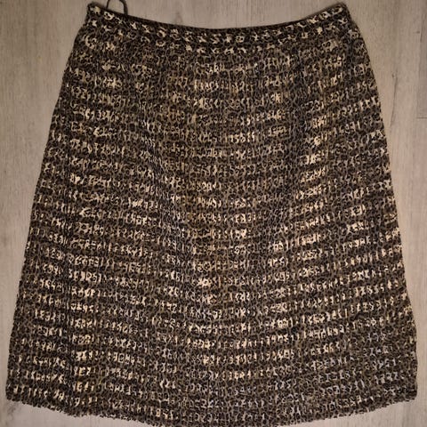 Ranskalainen musta pitkä hame timantti ja metalli koristein. Koristeet ympäri hameen. Helma kellotettu. Lapussa teksti: Modele Depose Fabrique en France. Joustava vyötärö. Vyötärömitta sängyllä mitattuna 41cm (- 48cm) x 2 ja pituus 97cm.