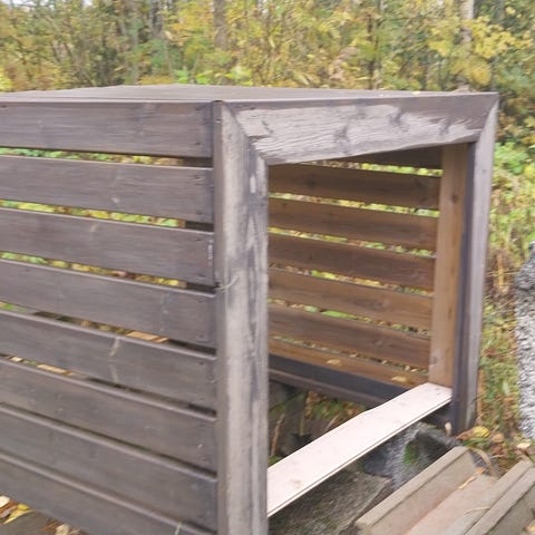 Myydään roska-aitaus. Kork.112cm ja lev.109cm.syv.91cm.Kyllästetystä laudasta valmistettu. Ilman porttia.Ehyt. tolppajalat mukaan.hinta 45e..