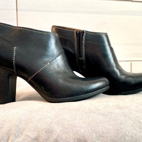 Myydään konjakinruskeat Clarks Softwear nilkkurit. Nahkaa, tukeva korko. Pehmeä sisäpohja.