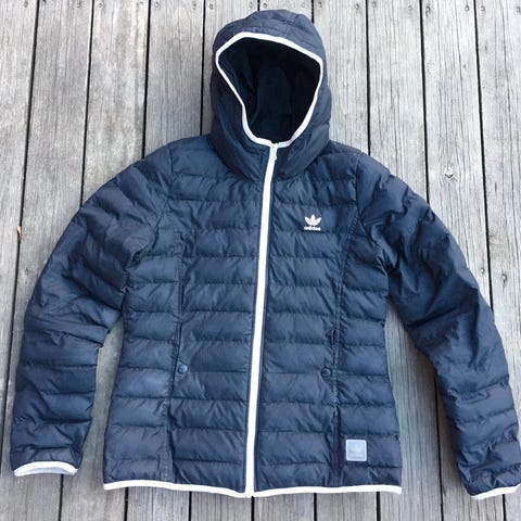Musta lyhyt adidaksen kevyttoppatakki koossa 38 eli M koko. Hyvässä kunnossa.