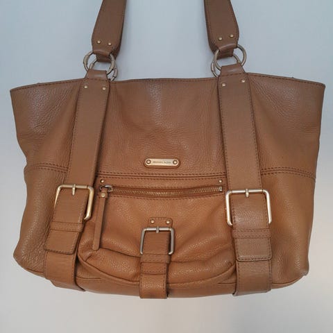 Aito Michael Korsin musta nahkalaukku hopeisilla metalliosilla. Paljon käytetty, joten kulumaa löytyy. Vuoressa sisällä tahra. Metalliketjuissa kulumaa. Olkahihnan ja pohjan sivuilla kulumaa. Ostettu aikoinaan Tampereelta Cottonilta. Katso tarkemmat kuvat.