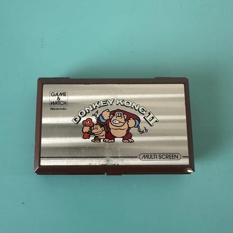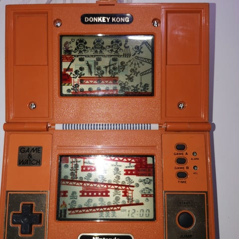 Legendaarinen Donkey Kong pelikonsoli. Kannen lukitusklipsi rikki, muuten hyvä kuntoinen ja täysin tomiva.