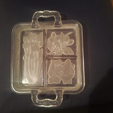 Näyttävä lasiastia. Paino 2,8kg. Mitat: 42x28cm. Kunto erinomainen.
