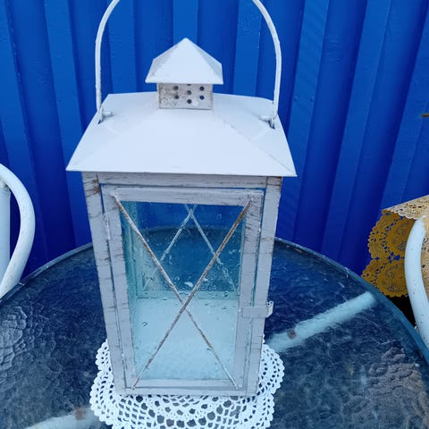 Sydän koristeinen lyhty. Käytönjälkeä löytyy. Suurin on katossa kaksi värinkuluma kohtaa (näkyy lisäkuvissa).