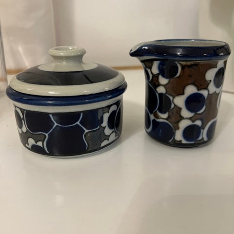 Arabia Iittala Handpainted Vintage astiat sokerikot sokeriastiat Sokerikippo retro vintage design Finnish piippuleima piippu-leima sokerikko sini-valkoinen sininen
