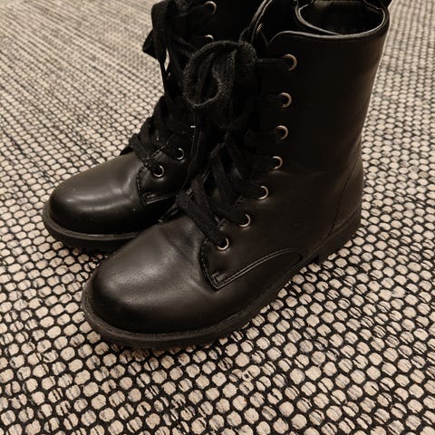 Tytön mustat saappaat koko 32. Käytetyt, mutta hyvässä kunnossa vielä jatkokäyttöön. Sisäsivussa vetoketjut.