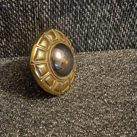 Vintage retro kullanvärinen rintaneula/pukukoru. Materiaalista ei ole tietoa. Siisti ja ehjä, ei käytön jälkeä juuri ole, eikä väri ole lähtenyt.