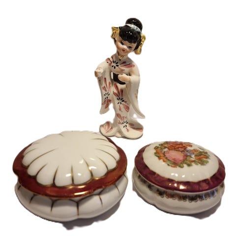 Myydään kuvien mukaiset kauniit japanilaistyyliset "Geisha ja varjo" -korvakorut. Sama kuva molemmin puolin. Materiaali akryyliä, ovat kevyet korvissa. Metalliosat nikkelittömät. Jääneet itseltä käyttämättä.