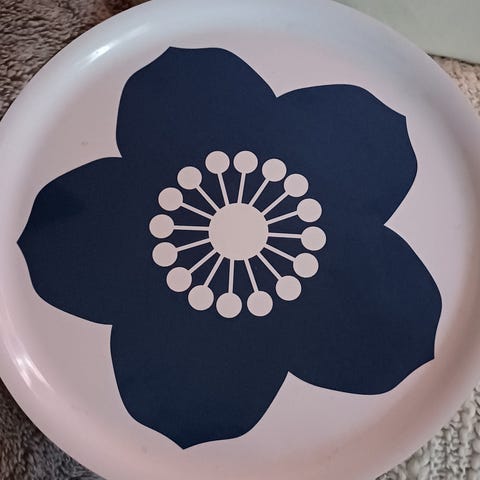 Tarjottimen halkaisija 34 cm, korkeus 3, 5 cm.