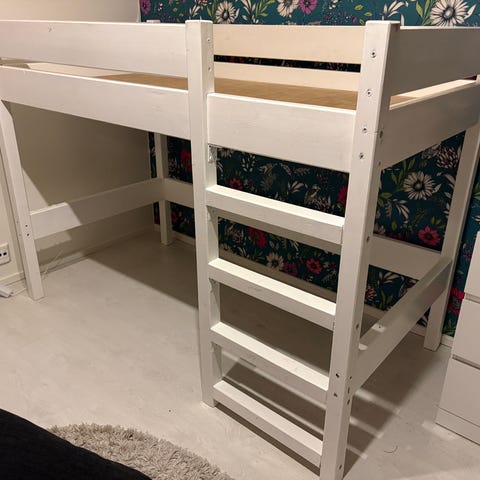 Sängyn runko on täyttä puuta ja rakenteeltaan erittäin tukeva. Mitoitus sopii 200 x 80 cm patjalle. Laidan korkeus sopii sekä ohuelle että paksulle patjalle. Toisessa päädyssä on pöytätaso ja pitkällä sivulla on verhotanko, joten sängyn alle saa mukavan leikkipaikan.