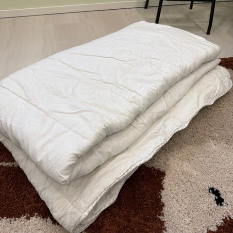 Pesun jäljiltä oleva puuvilla tuplapeitto ja siihen sopiva vaal. sin. tuplalakana. Täkki 190cm×200cm ja lakana 198cm×240cm. Yhteishinta 28€.