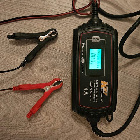 Kuvan mukainen akkulaturi jännite säädettävissä.
