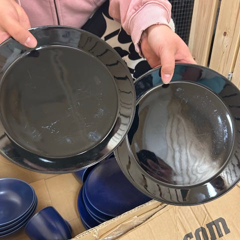 3 kahvikupin lautasta, pullalautasia 6 x 17 cm. Pientä käytönjälkeä nähtävissä,muuten ehjiä.
