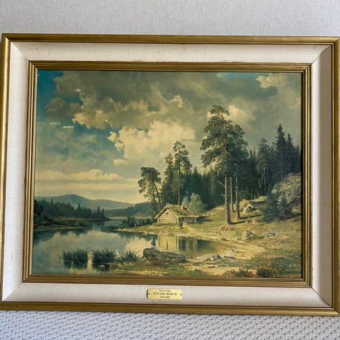 Kaunis vanha taulu, öljymaalaus. Kehyksissä kulumaa.