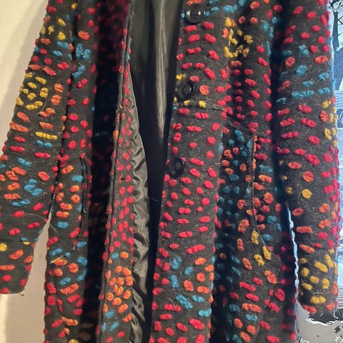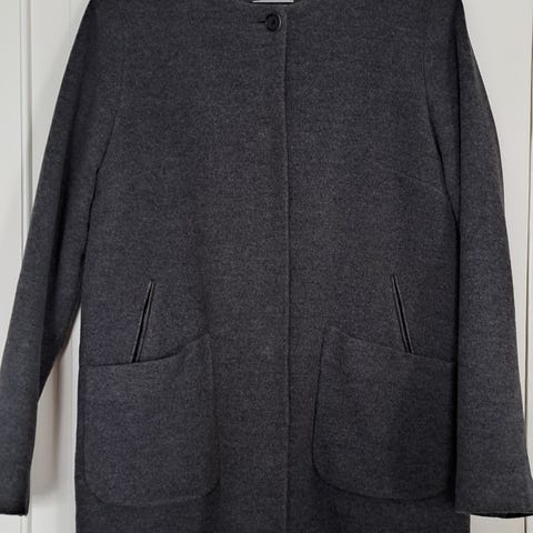Elvine merkkinen laadukas villakangastakki. Todella hyvässä kunnossa, koska olen vaan hillonnut tätä kaapissa monta vuotta. Takki on lämmin, olen käyttänyt tätä kovien pakkasten takkina. Eli sisältä löytyy kunnon toppaus. Hihojen sisällä resori. Vetoketju, ja magneeteilla toimivat napit etupuolella. Takissa on huppu. Koko M. Olen käyttänyt tätä M-L kokoisena - kovin paksua villapaitaa ei ehkä mahdu alle. Huivi ei ole kaupan.