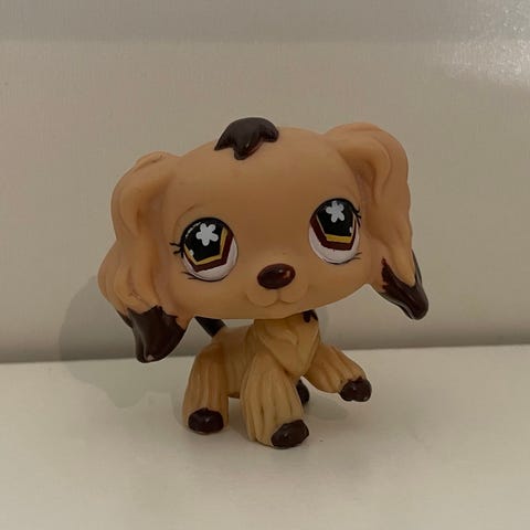 Kuvien mukainen aito littlest pet shop cockerspanieli #960 tavaroineen.