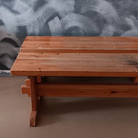 Tästä penkit jotka ei takuulla notku! Kannet 65 mm paksua 65 koivua, jalat paksua metallia.