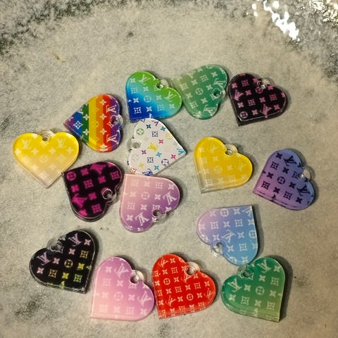 Myydään yhdessä 2 eri settiä. Kuvat väritetään puukynillä. Sitten ne kutistetaan uunissa ja lopuksi niistä tehdään koru.