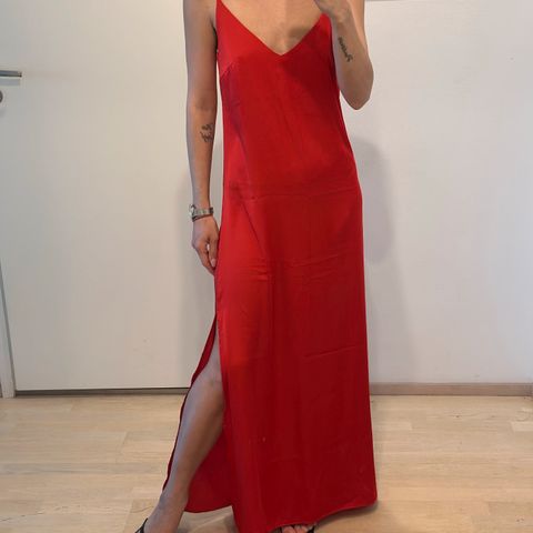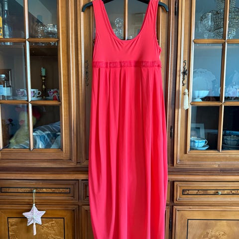 Asos Edition merkkinen espanjalais-tyylinen koko pitkä mekko. Pitkälle tytölle. Takana vetoketju ja hakanen. Paljon kangasta ja sisältää oranssin vuoren, keskellä edessä halkio joka helpottaa kävelyssä. Koko EU 36. Kangas on tekokuitua. Käsin pestävä. Kai Kai on noin 40cm. Pituus Hartiasta helmaan noin 154cm. Ei joustavaa kangasta. Ei rypisty. Hoito ohjeet leikattu pois mutta luultavasti viskoosia koska laskeutuu hyvin.