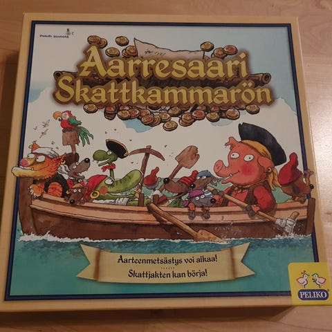 Mauri Kunnas Aarresaari-lautapeli, ikä 5+, pelaajia 2-4, kaikki osat tallella. Sisältää ohjeet. Koko perheen peli, jossa yritetään löytää kolmitasoiselta pelilaudalta aarrekorttien mukaisia aarteita.