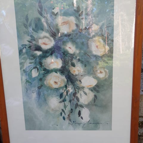 Minna Immosen nalle taulu puukehyksillä.